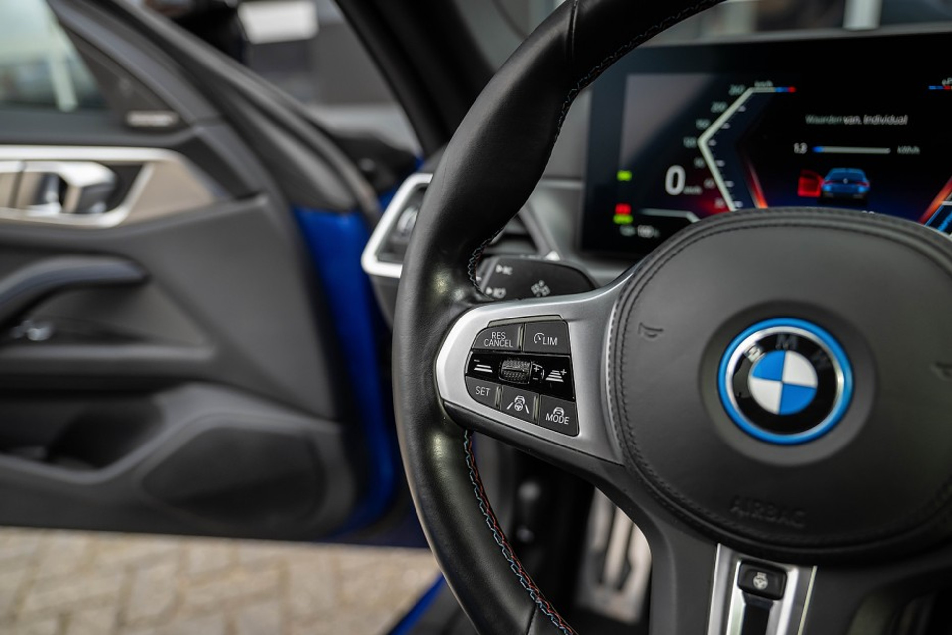 Online! Een sportieve en complete BMW i4 M50 High Executive. Deze auto is voorzien van een krachtige elektriciteit-motor. Die een vermogen levert van 544 pk. De auto is uitgevoerd in de kleur Portimao Blau. Het interieur is voorzien van Leder Vernasca Schwarz Naht Blau.