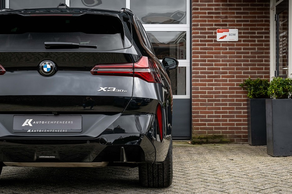 Online! Een compleet uitgevoerde BMW X3 30e xDrive M Sport Pro. Deze BMW is voorzien van een krachtige benzinemotor. Deze motor levert een vermogen van 299 pk. De auto is uitgevoerd in de kleur Black Sapphire Metallic. Het interieur is uitgerust met Veganza Perforiert Und Gesteppt Schwarz. Deze BMW heeft slechts 4.651 km gereden. De auto verkeert in een uitstekende staat. Daarnaast is deze auto voorzien van fabrieksgarantie t/m 17/10/2027. Ook is deze auto voorzien van een mooie complete lijst aan opties. Op de lijst aan opties van deze auto vindt u o.a.: M Sport pro pakket, Achteruitrijcamera, Parkeersensoren voor en achter, Elektrische stoelbediening met geheugen, Stoelverwarming, adaptieve LED Lights, Iconic glow, Ambient light, Shadow, Keyless entry/start/stop, 360° camera, Head-up display, 20 inch lichtmetalen velgen, Sportstoelen, Lederen bekleding, Stoelverwarming, Climate control, Elektrisch wegklapbare trekhaak, Ambiance verlichting, DAB, Draadloos laden, Harman/Kardon geluidsinstallatie, adaptieve cruise control, Zwarte hemelbekleding, etc.