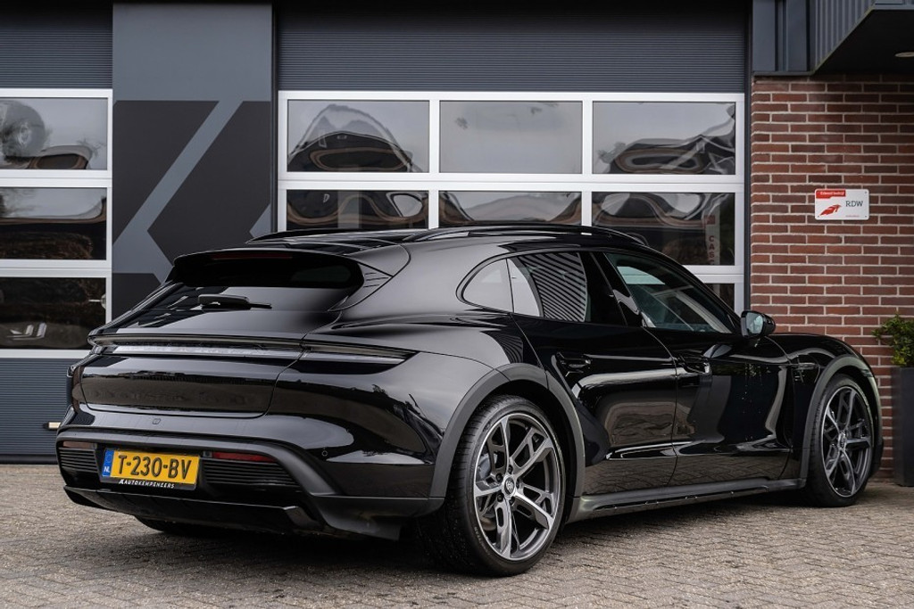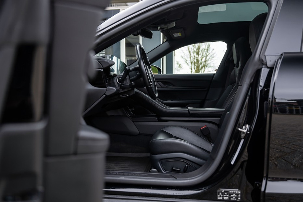 Online! Een sportieve en complete Porsche Taycan Cross Turismo 4 93kWh. Deze auto is voorzien van een tweetal krachtige elektromotoren. Die samen een vermogen leveren van 381 pk. De auto is uitgevoerd in de kleur Tief Schwarz. Het interieur is voorzien van Vol zwart leder.