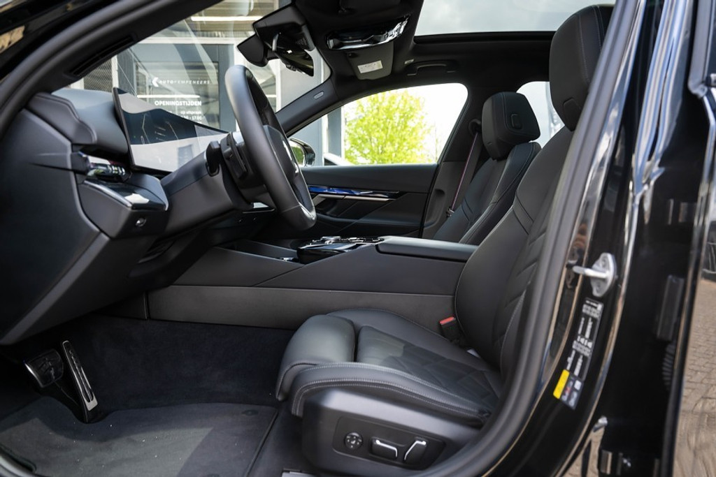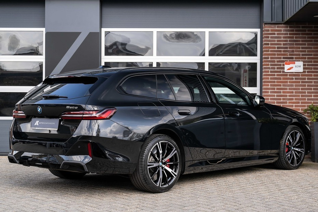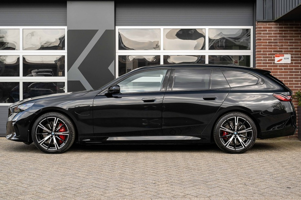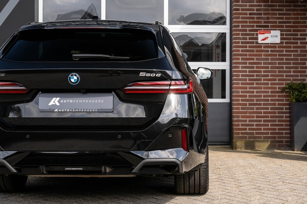 Online! Een sportieve en zeer complete BMW 550e xDrive Touring M Sport Pro. Deze auto is voorzien van een krachtige 6 cilinder plug-in hybride aandrijflijn met een systeemvermogen van 450 pk. De auto is uitgevoerd in de kleur Black Sapphire Metallic. Het interieur is voorzien van Veganza Perforiert und Gesteppt Schwarz.