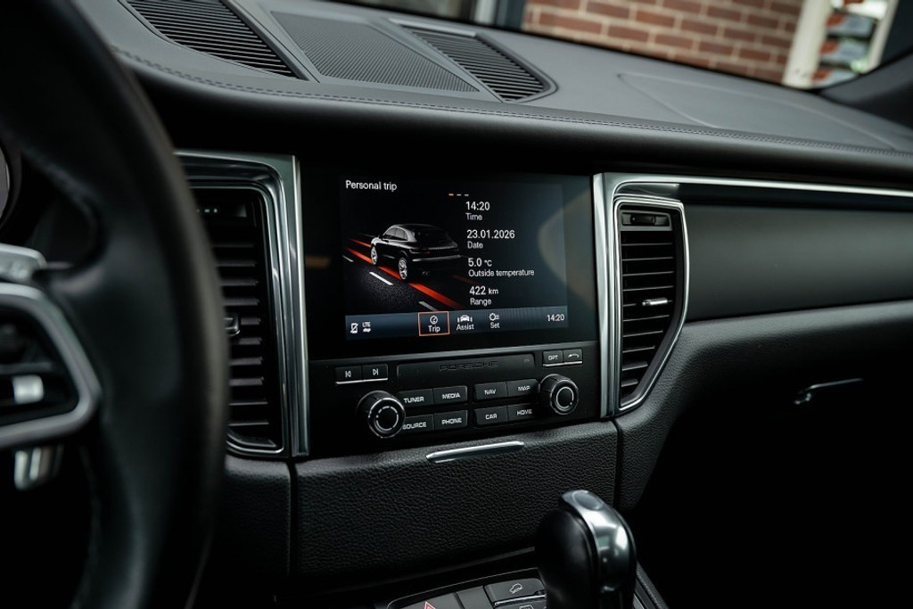Online! Een prachtige Porsche Macan. Deze Porsche is nieuw geleverd in 28/08/2018 en heeft slechts 104.503 kilometer gereden. Deze Porsche is uitgevoerd met een krachtige benzine motor die een totaal vermogen levert van 252pk. De Porsche is uitgerust met de kleur zwart. Verder is de auto samengesteld met de volgende opties: PDK (Porsche Doppelkupplungsgetriebe), Panoramadak, Porsche Adaptieve onderstel, Luchtvering, Adaptieve led koplampen, Camera, Lederen sportstoelen, Flippers, 20' inch lichtmetalen velgen, Navigatie, Stoelverwarming, Dealeronderhouden, Lane assist, Cruise control, Elektrische stoel bediening, Apple Carplay, etc,