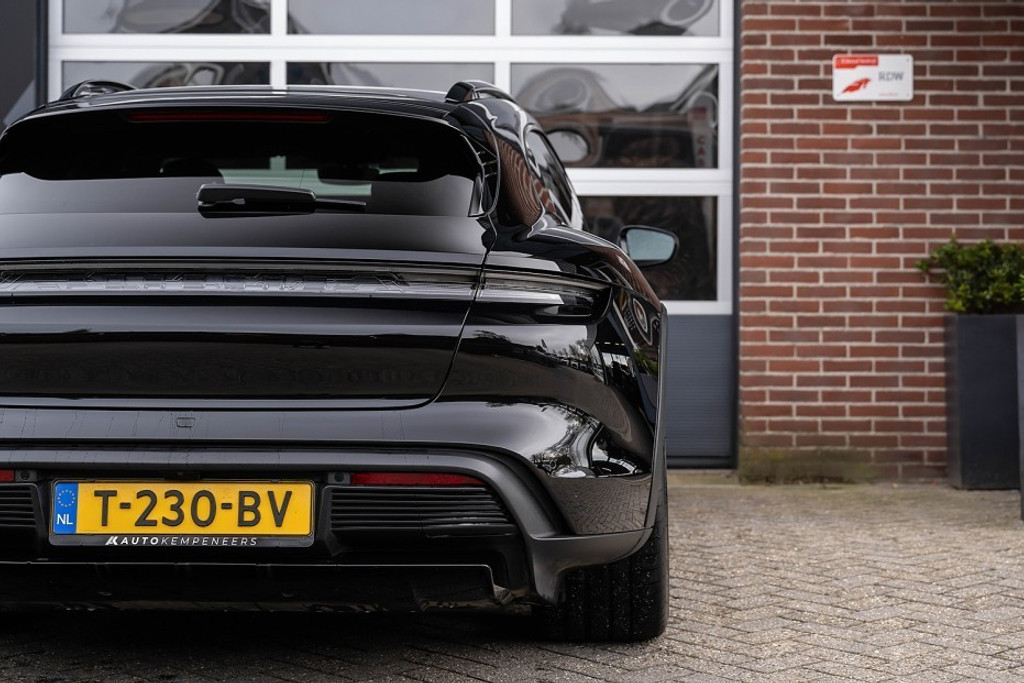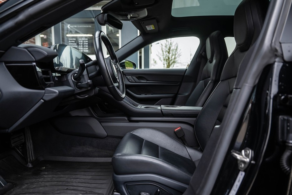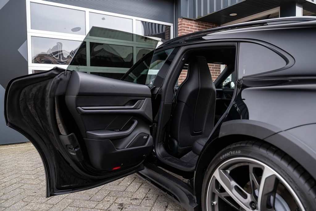 Online! Een sportieve en complete Porsche Taycan Cross Turismo 4 93kWh. Deze auto is voorzien van een tweetal krachtige elektromotoren. Die samen een vermogen leveren van 381 pk. De auto is uitgevoerd in de kleur Tief Schwarz. Het interieur is voorzien van Vol zwart leder.