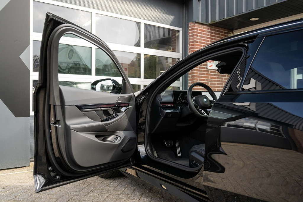 Online! Een sportieve en zeer complete BMW 550e xDrive Touring M Sport Pro. Deze auto is voorzien van een krachtige 6 cilinder plug-in hybride aandrijflijn met een systeemvermogen van 450 pk. De auto is uitgevoerd in de kleur Black Sapphire Metallic. Het interieur is voorzien van Veganza Perforiert und Gesteppt Schwarz.